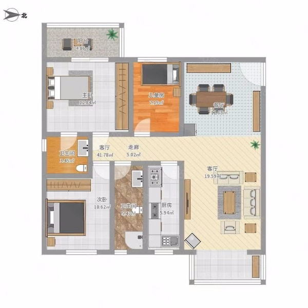 户型:3室2厅1卫