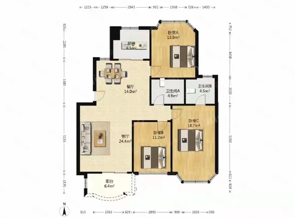 • 户型:3室2厅2卫