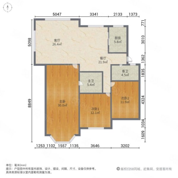 • 户型:3室2厅2卫