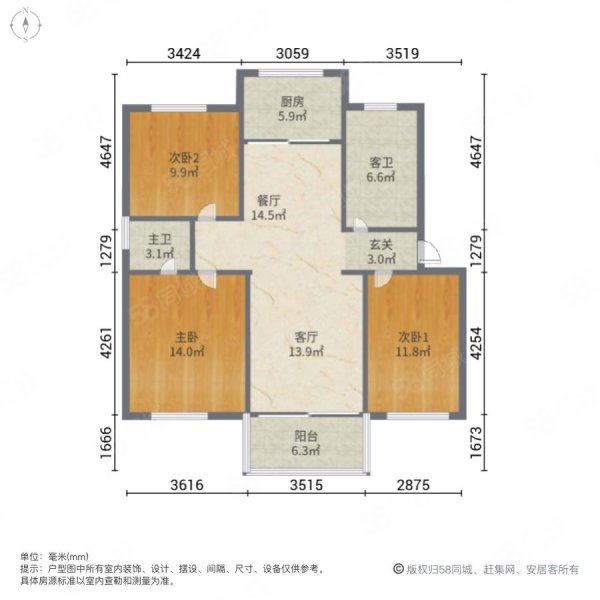 • 户型:3室2厅2卫