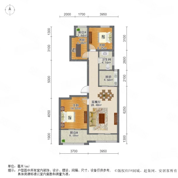 • 户型:3室2厅1卫