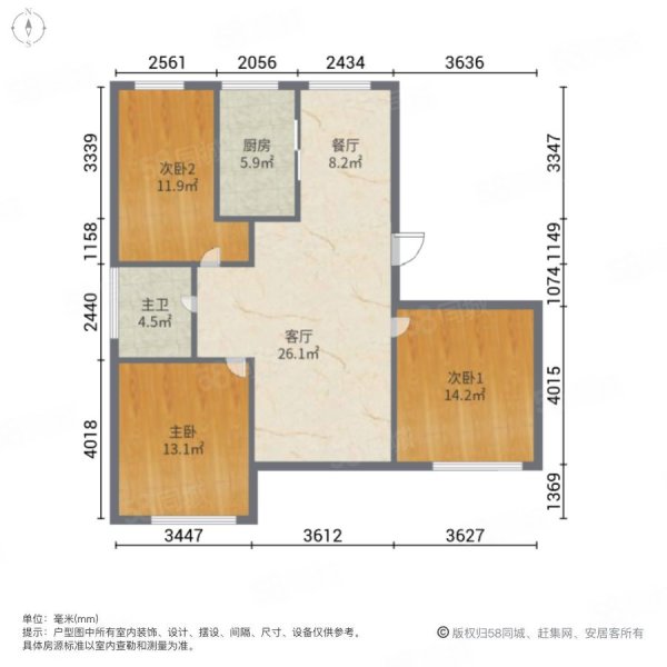 • 户型:3室2厅1卫