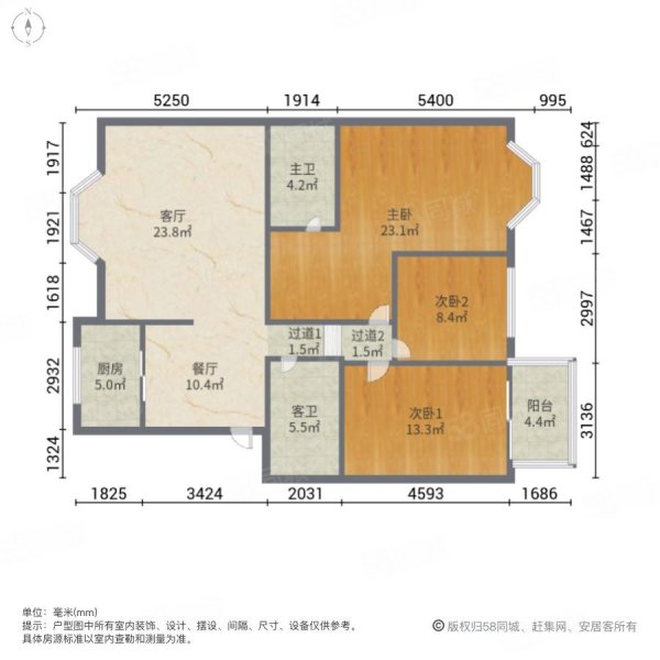 户型:3室2厅2卫