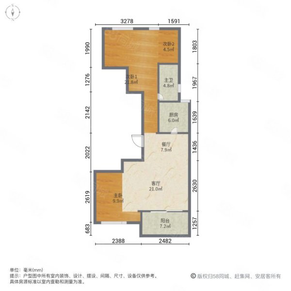 • 户型:3室2厅1卫