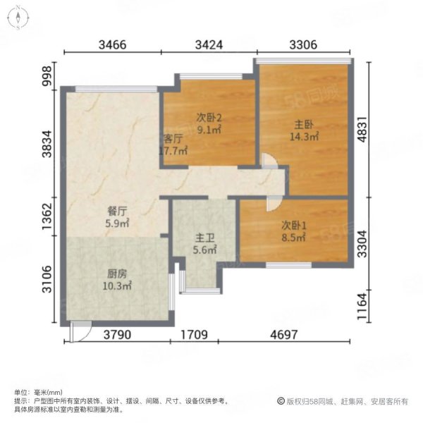• 户型:3室2厅1卫