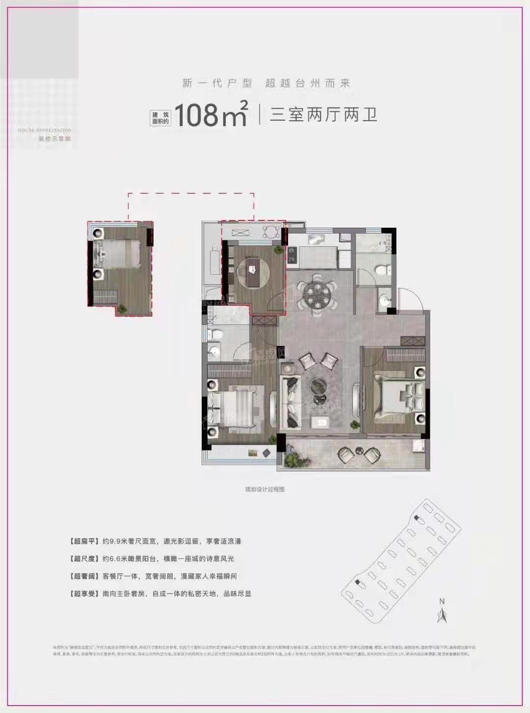 楼盘地处:椒江,占地面积:50932 ㎡,建筑面积:暂无数据 ㎡。主力户型: 3室2厅2卫,面积:108㎡(建面)㎡;户型二:3室2厅2卫,面积:109㎡(建面) ㎡;户型三:4室2厅2卫,面积:125㎡(建面) ㎡;户型四:3室2厅2卫,面积:107㎡(建面) ㎡;户型五:,面积: ㎡。