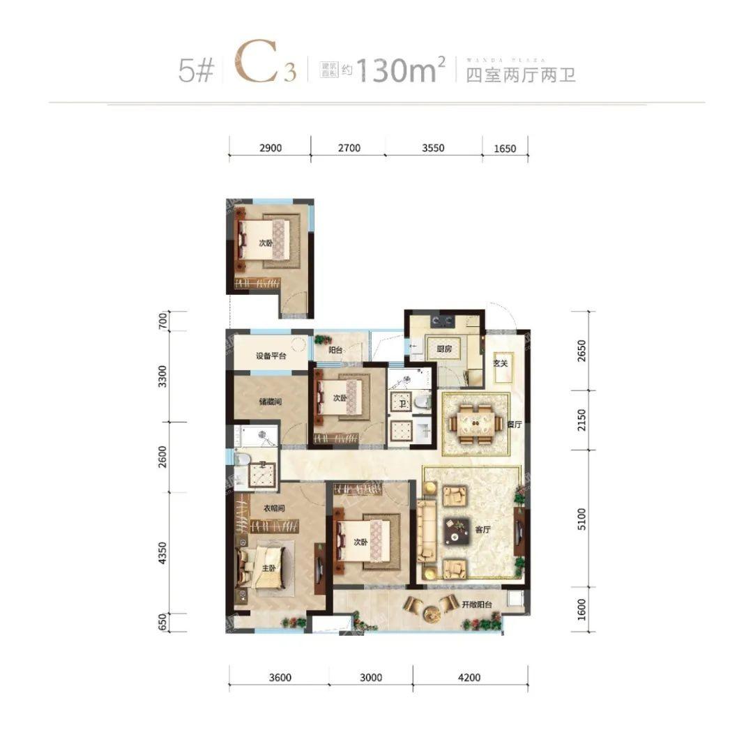 户型结构:4室2厅2卫 户型面积:130㎡(建面) ㎡